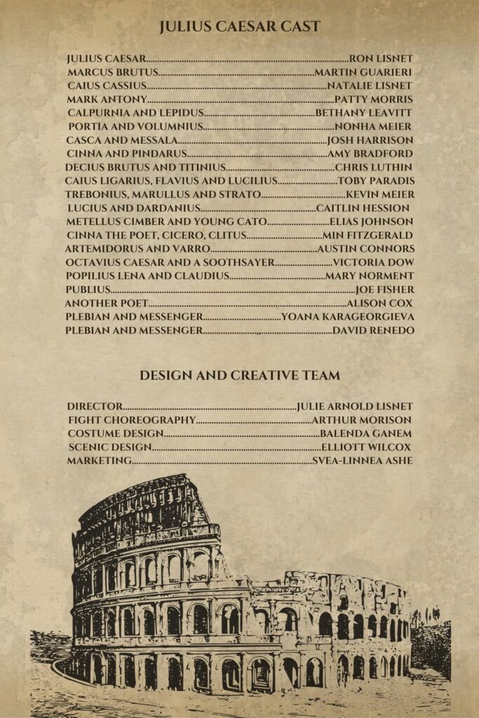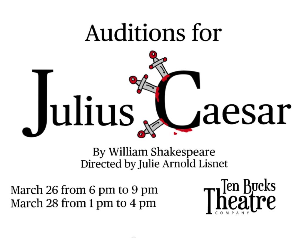 Auditions for Ten Bucks Theatre’s production of Julius Caesar are coming up soon!
